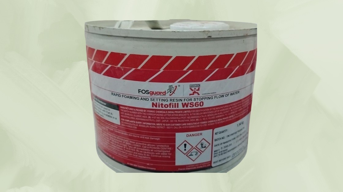 Stops the flow of water when injected into cracks in concrete in the presence of moving water. Nitofi ll WS60 with Nitofi ll UR63 provides an eff ective system for crack sealing in wet conditions.